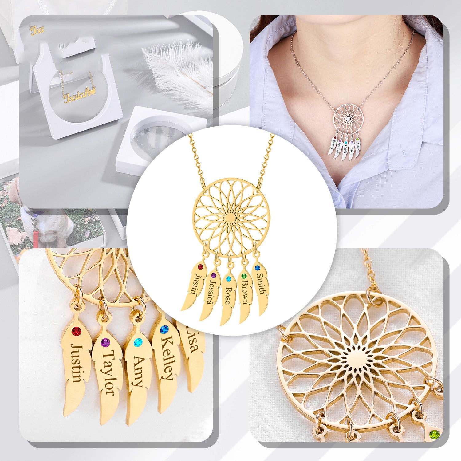Elegant birth stone necklace in silver with electroplating, available in white, gold, or rose gold. Customize with names to create a meaningful, unisex piece perfect for any occasion.