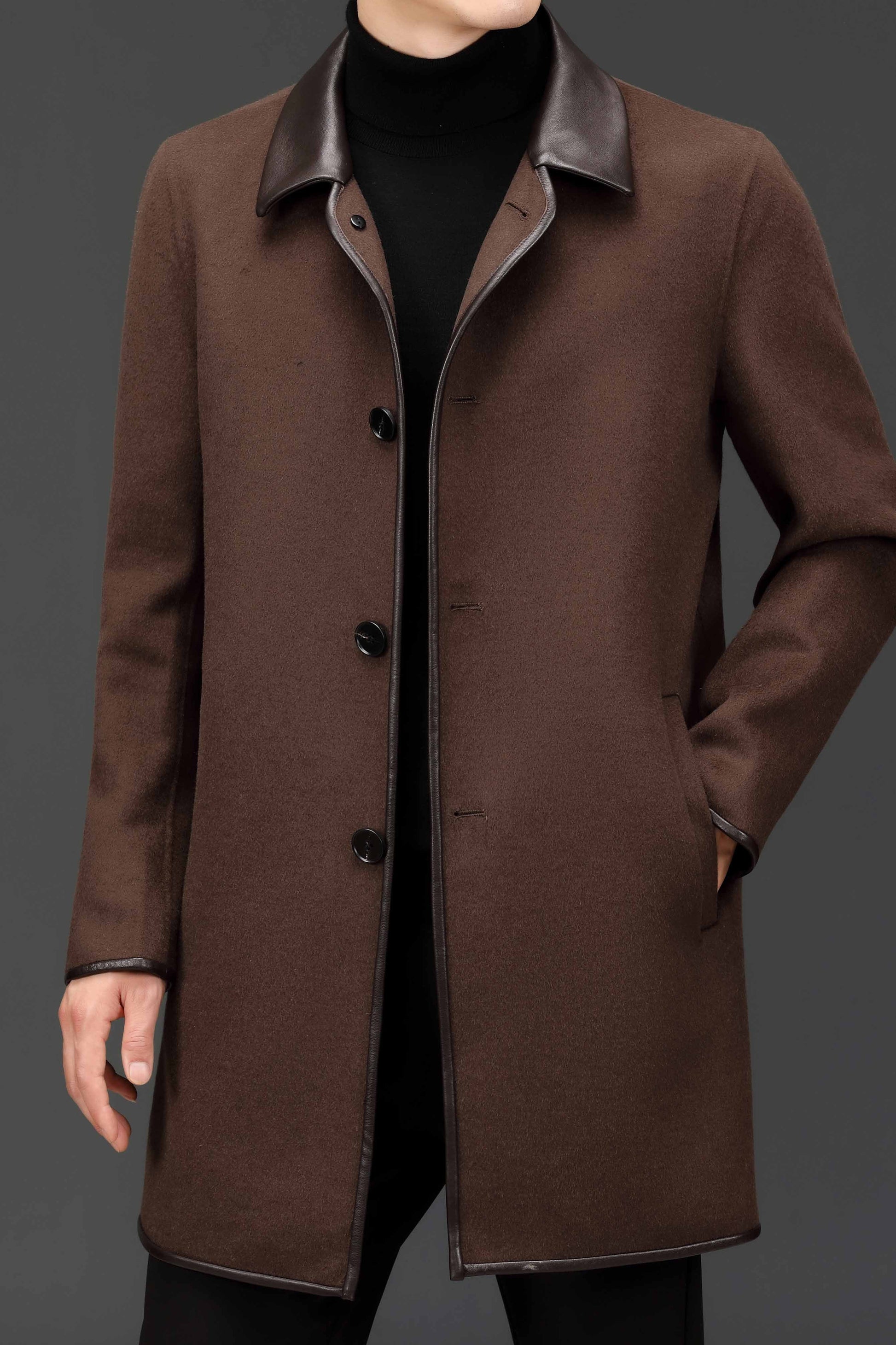 Men's Mid Length Lapel Woolen Cashmere Coat